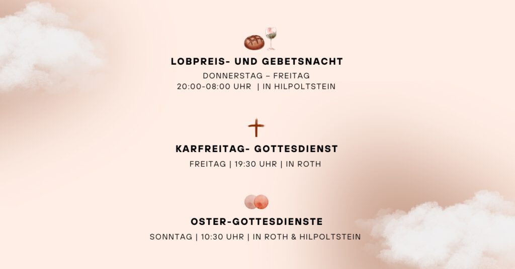 Weil Gebet unsere ERSTE Option sein soll – vor allem Tun und Wirken – wollen wir mit PRAY FIRST starten! Diese Kraft, geistlich für Menschen und Reich Gottes einzutreten, wollen wir jeden Freitagmorgen erbeten, uns gegenseitig stärken und Gott ganz persönlich erleben – in Bibel, Gebet & Gemeinschaft