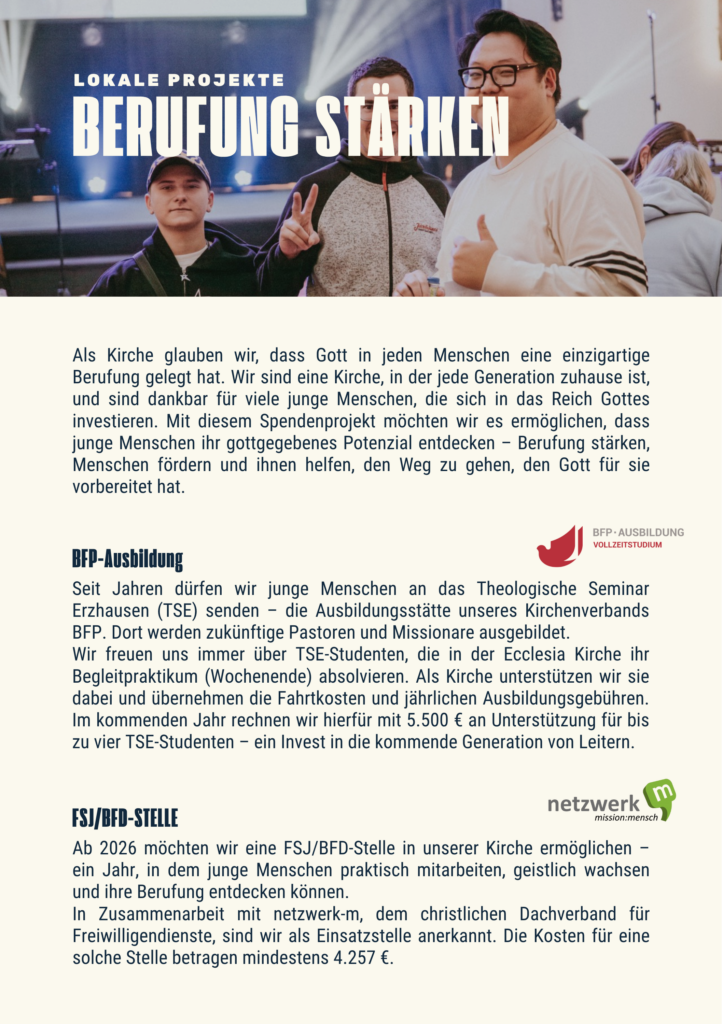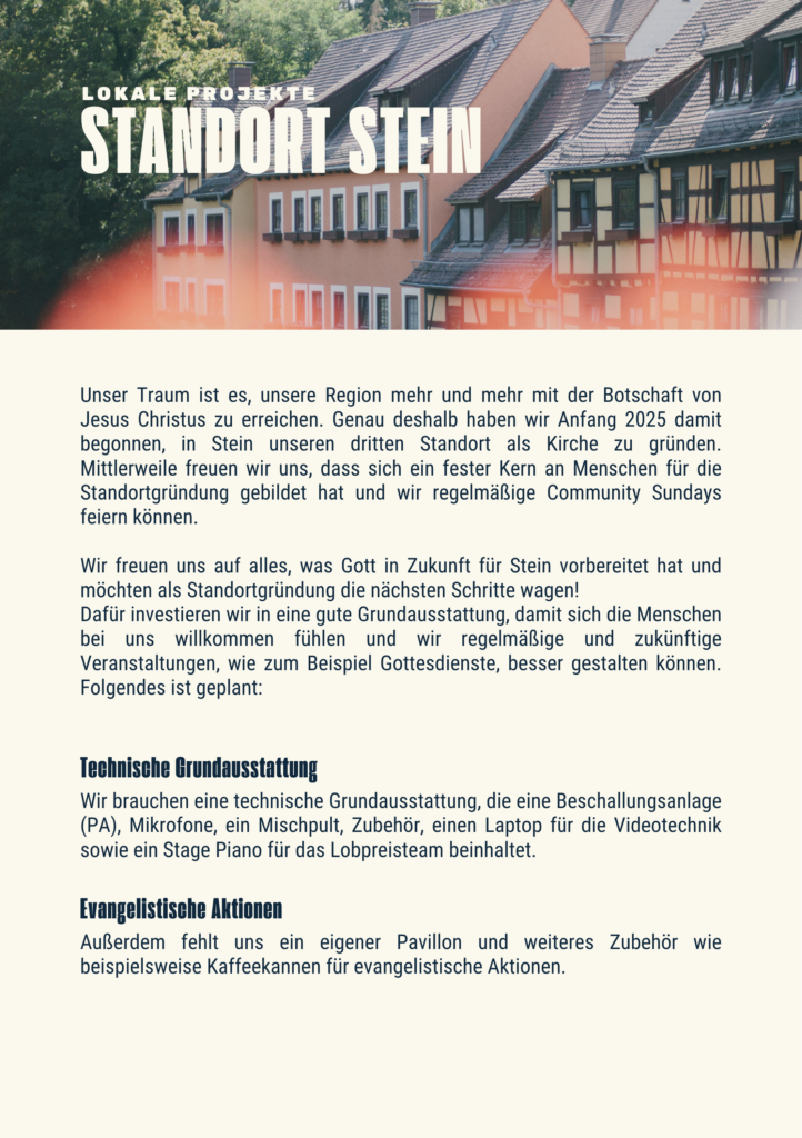 An dieser Stelle wollen wir uns bereits bei dir bedanken. Dein Gebet, deine Spenden und deine Mitarbeit in Kirche machen es möglich, die Herzen von vielen Menschen mit der Botschaft von Jesus zu erreichen.